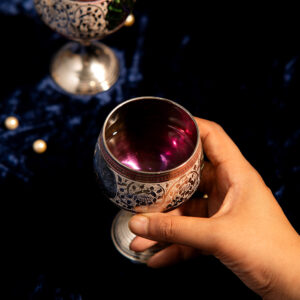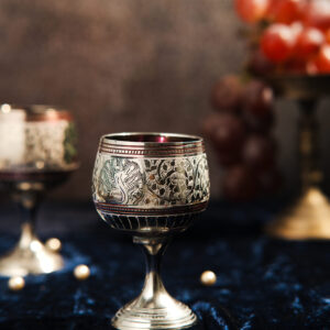 These exquisite wine glasses are a celebration of craftsmanship and colour, featuring intricate hand-painted floral and geometric designs in rich tones of gold, red, green, and pink. With slender stems and ornate bases, each glass is a unique blend of elegance and tradition. Perfect for festive occasions, gifting, or display, they add a touch of regal charm to any setting.