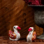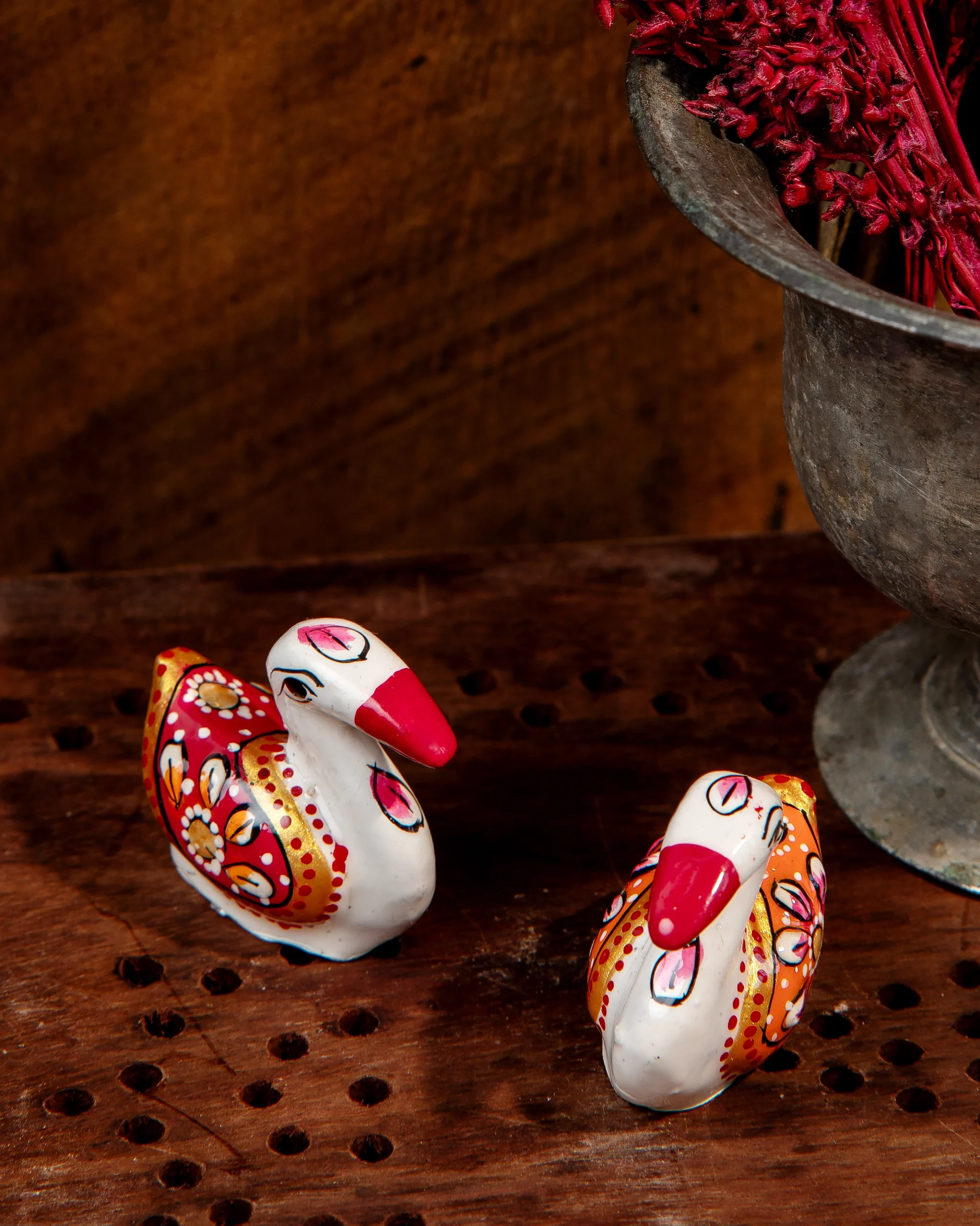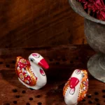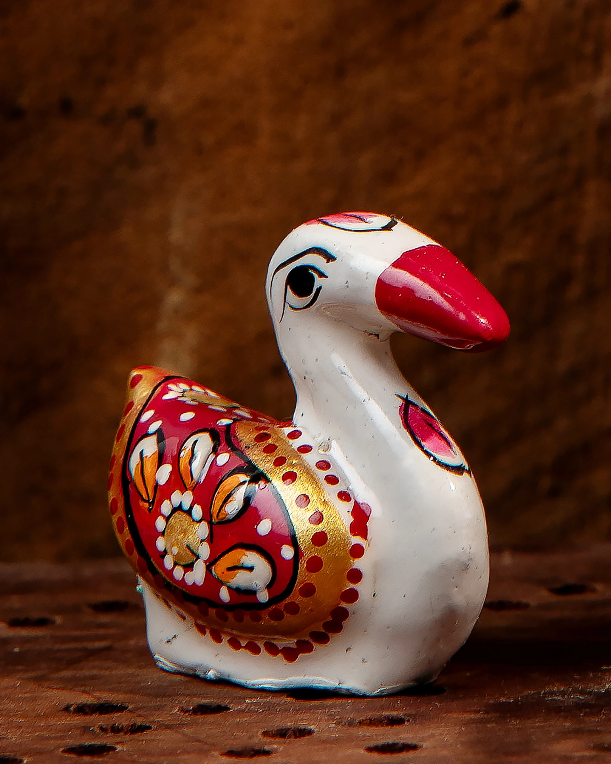 Hand-Painted Swan figurine crafted from fine metal and embellished with vivid enamel design. With its glossy intricate Meenakari detailing, this artefact serves as a captivating décor accent or a meaningful gift—bringing colour, culture, and charm into any setting.